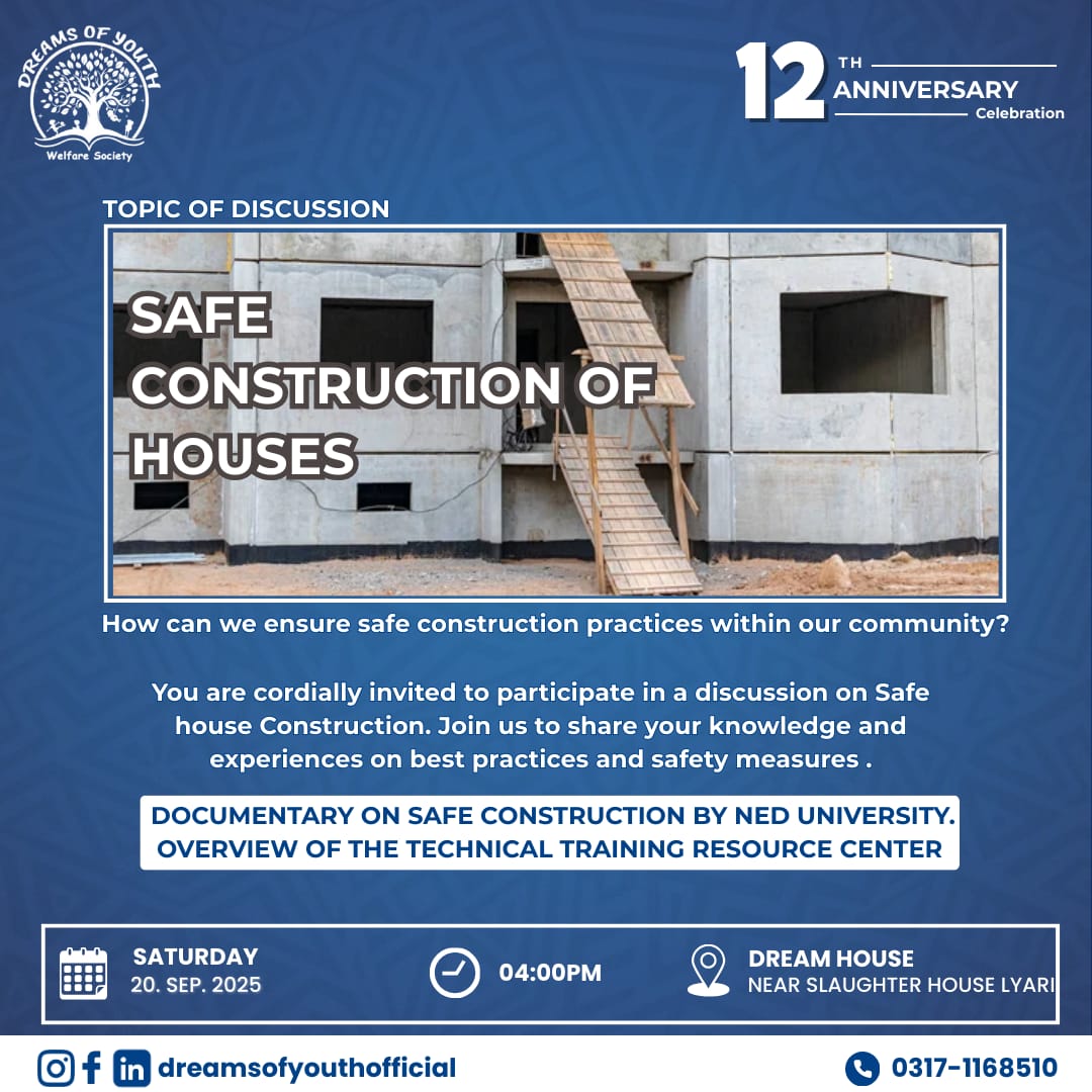 Safe Construction of Housing, Awareness Session at Dreamhouse, Lyari on 17th September 2025. Community residents, youth, developers and UC representatives of area joined in the session, sharing findings on issues of high density housing. A Documentary on Safe Construction of Housing was screened at the session, prepared through the funding of NRPU project, based on the research findings. | |
