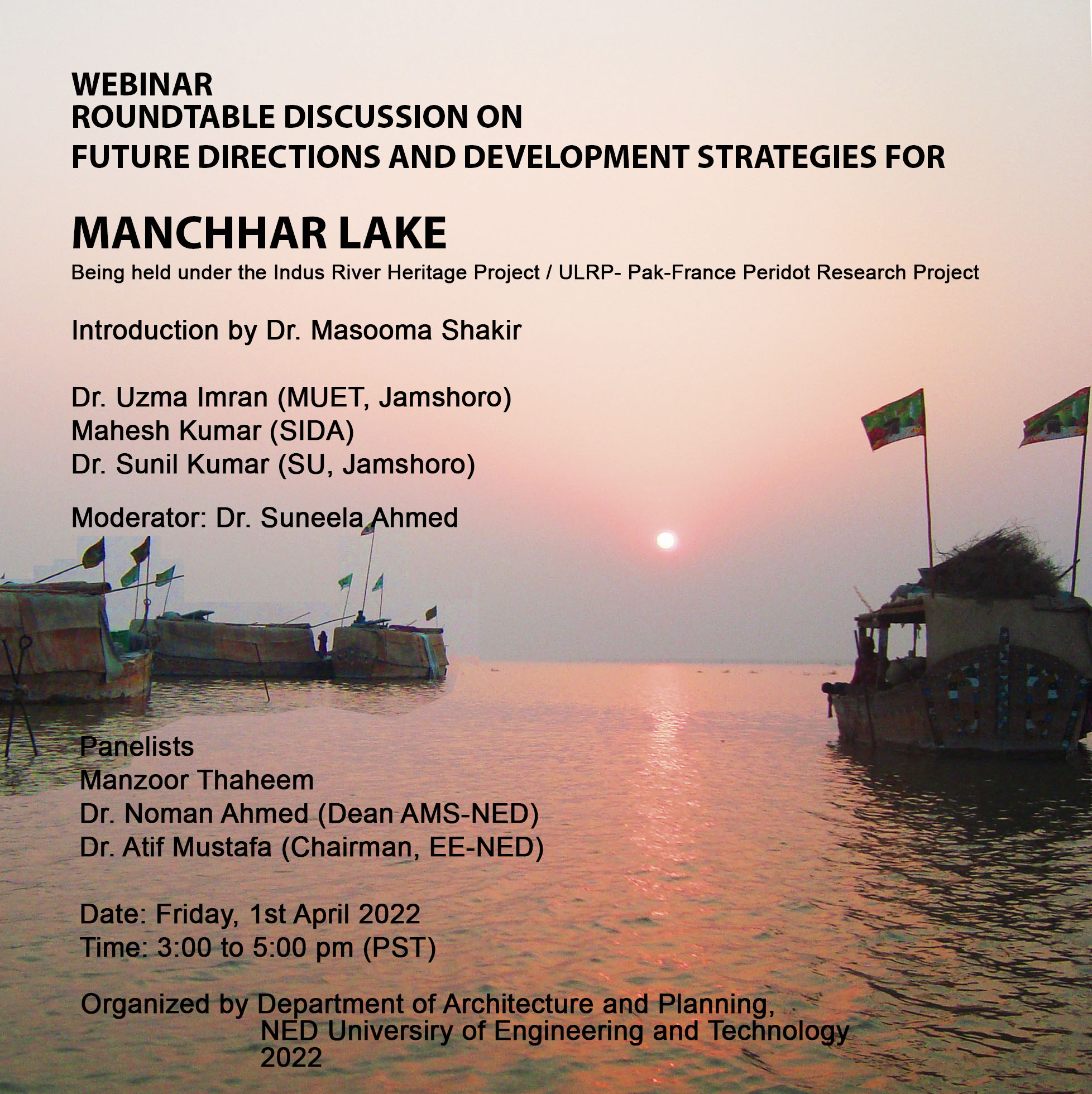 Roundtable Discussion on Manchar Lake and its Social and Environmental Challenges, 2022. Poster, Video https://youtu.be/CoxZu227Rrg Project: Indus River, Worship, Heritage and Communities Project Pak-France Peridot Research Project (2019-2022) Pakistan Team: Dr. Suneela Ahmed, Fahmida Shaikh (Phd Scholar) and PI – Dr. Masooma Shakir France Team: Dr. Delphine Ortis, Saba Sindhri (Phd Scholar) and PI- Prof. Dr. Michel Boivin. |