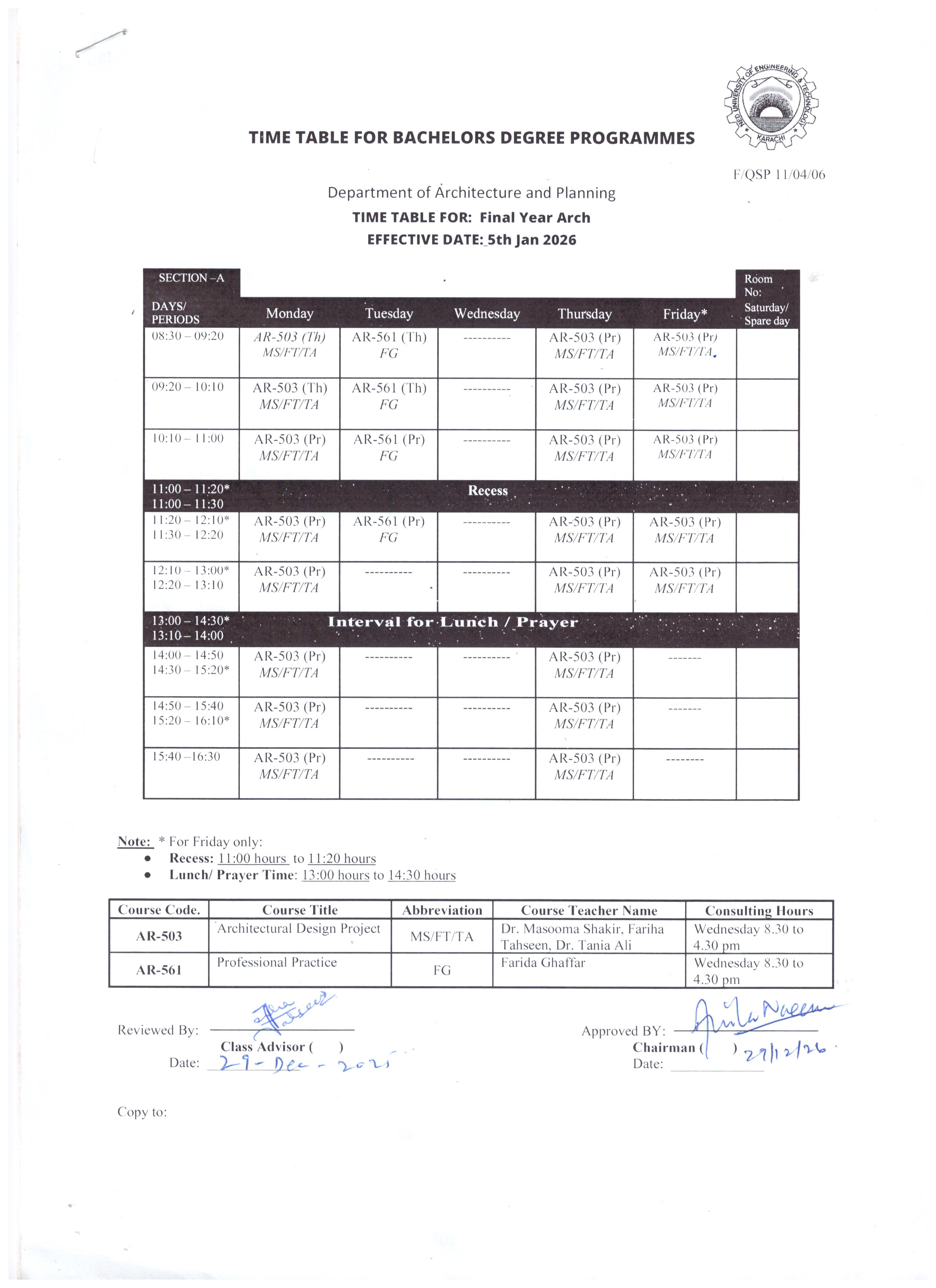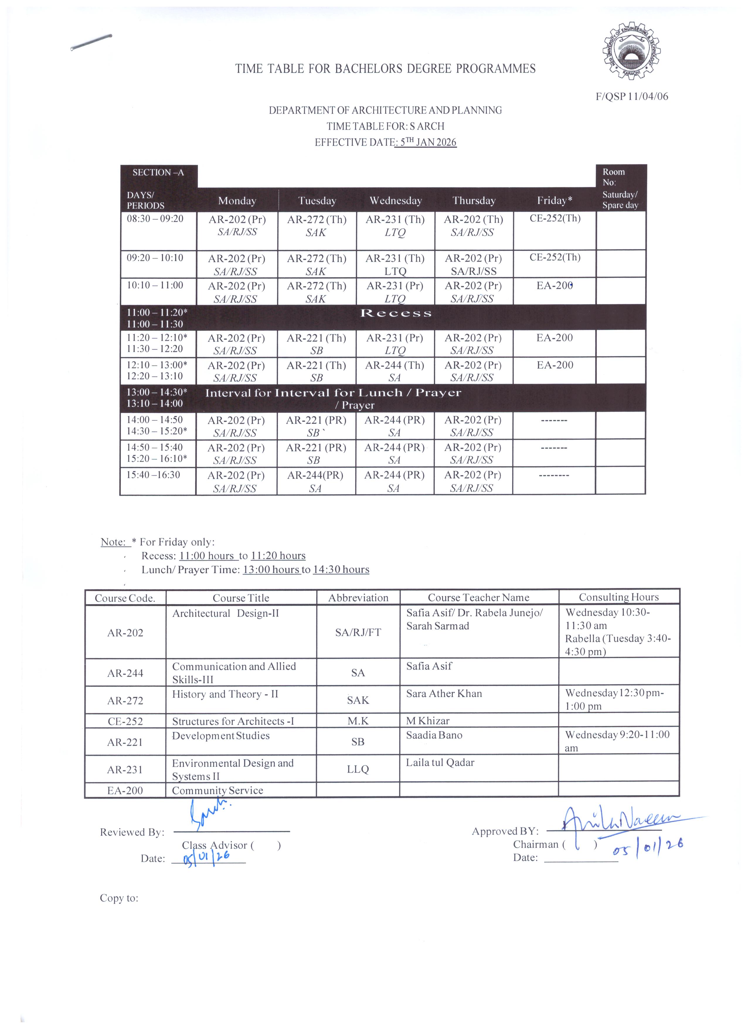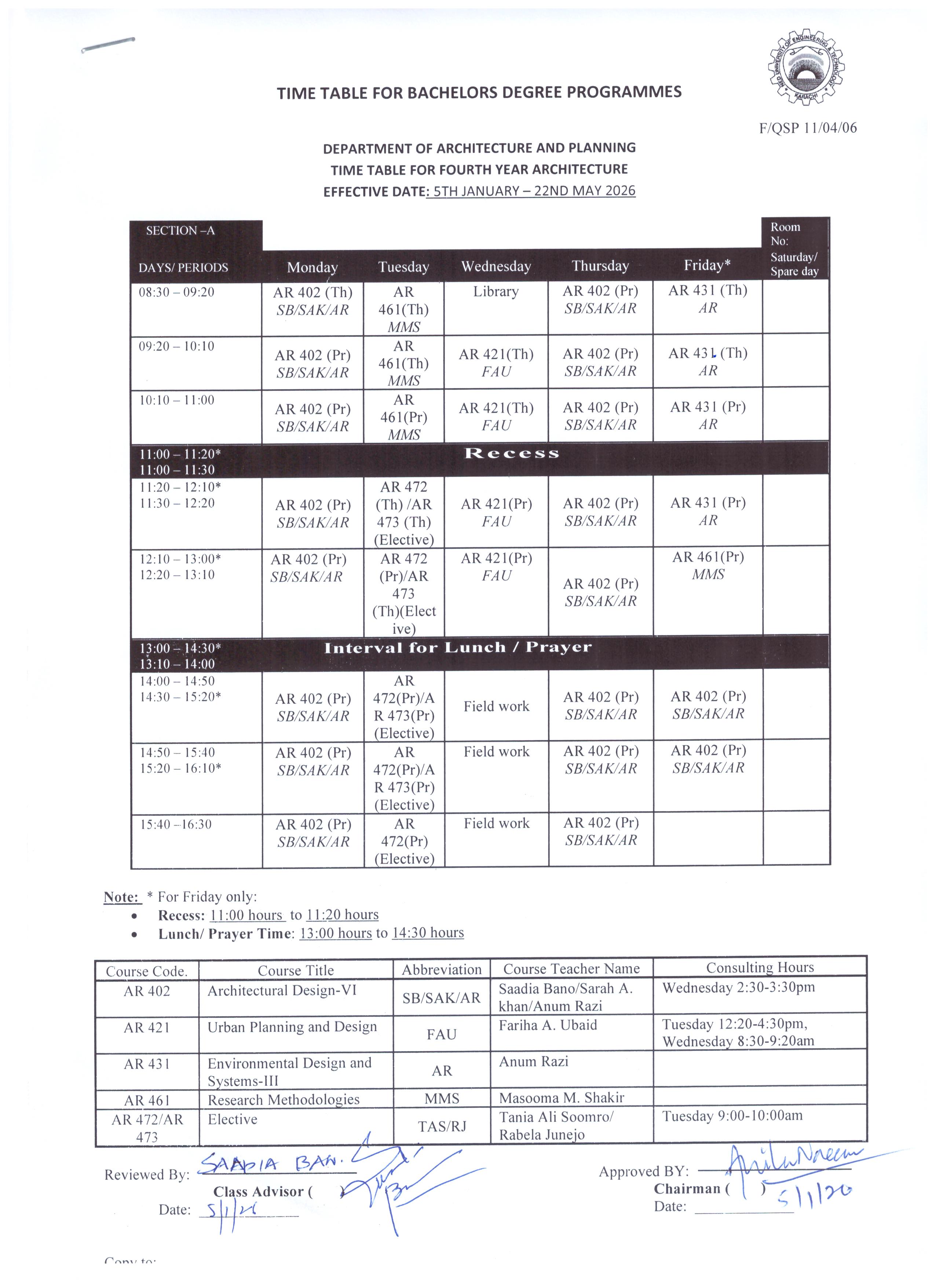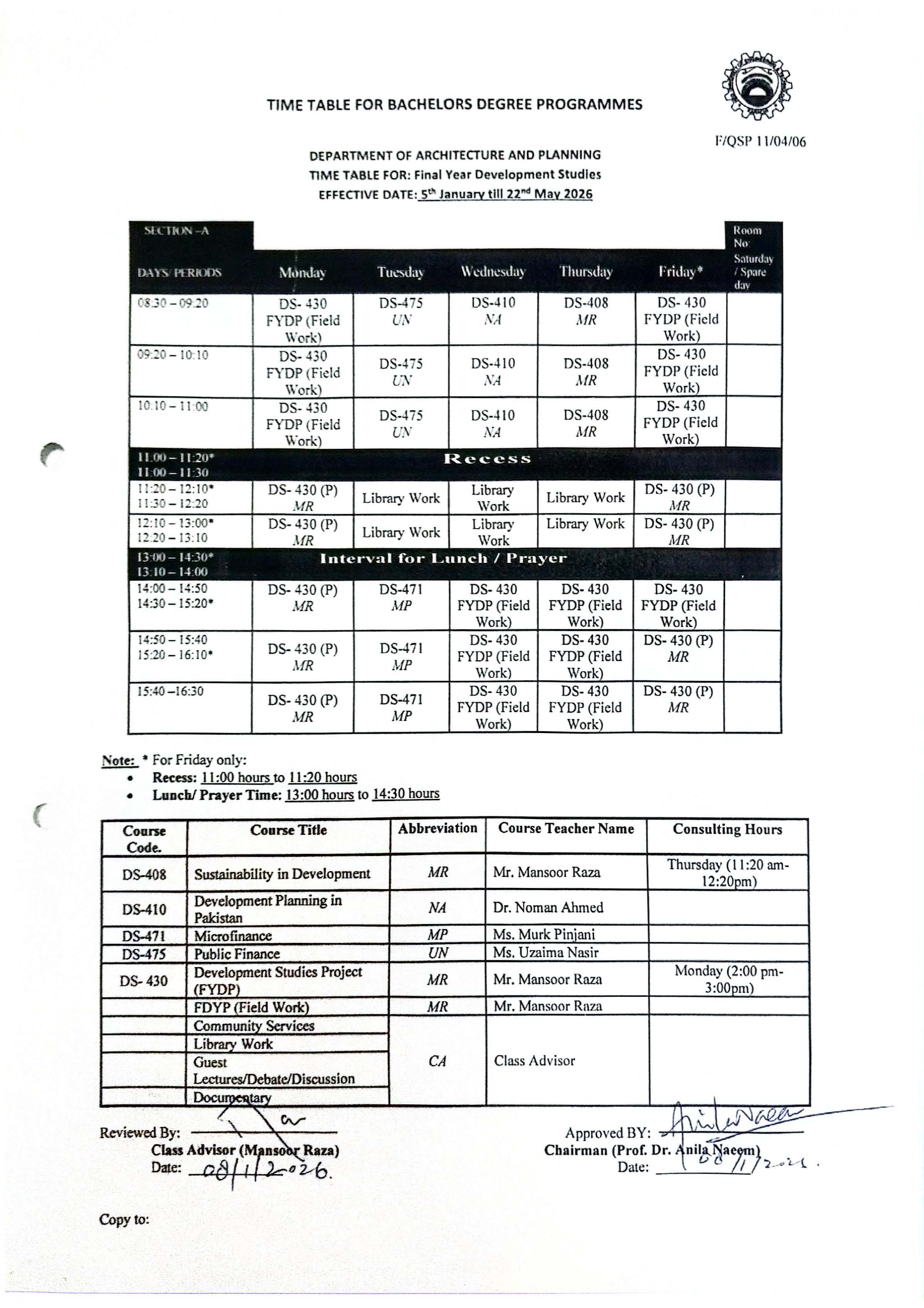 Bachelors Programme Timetables for Spring/ Fall-2024 Masters Programme Timetables for Spring/ Fall-2024 B.Arch – Architecture First Year Second Year Third Year Fourth Year Final Year BS – Development Studies First Year Second Year Third Year Final Year M.Arch – Architecture Timetables for Spring/ Fall MURP – Urban & Regional Planning Timetables for Spring/ Fall [Academic Calendar 2024-2025] [Academic Calendar 2024-2025]